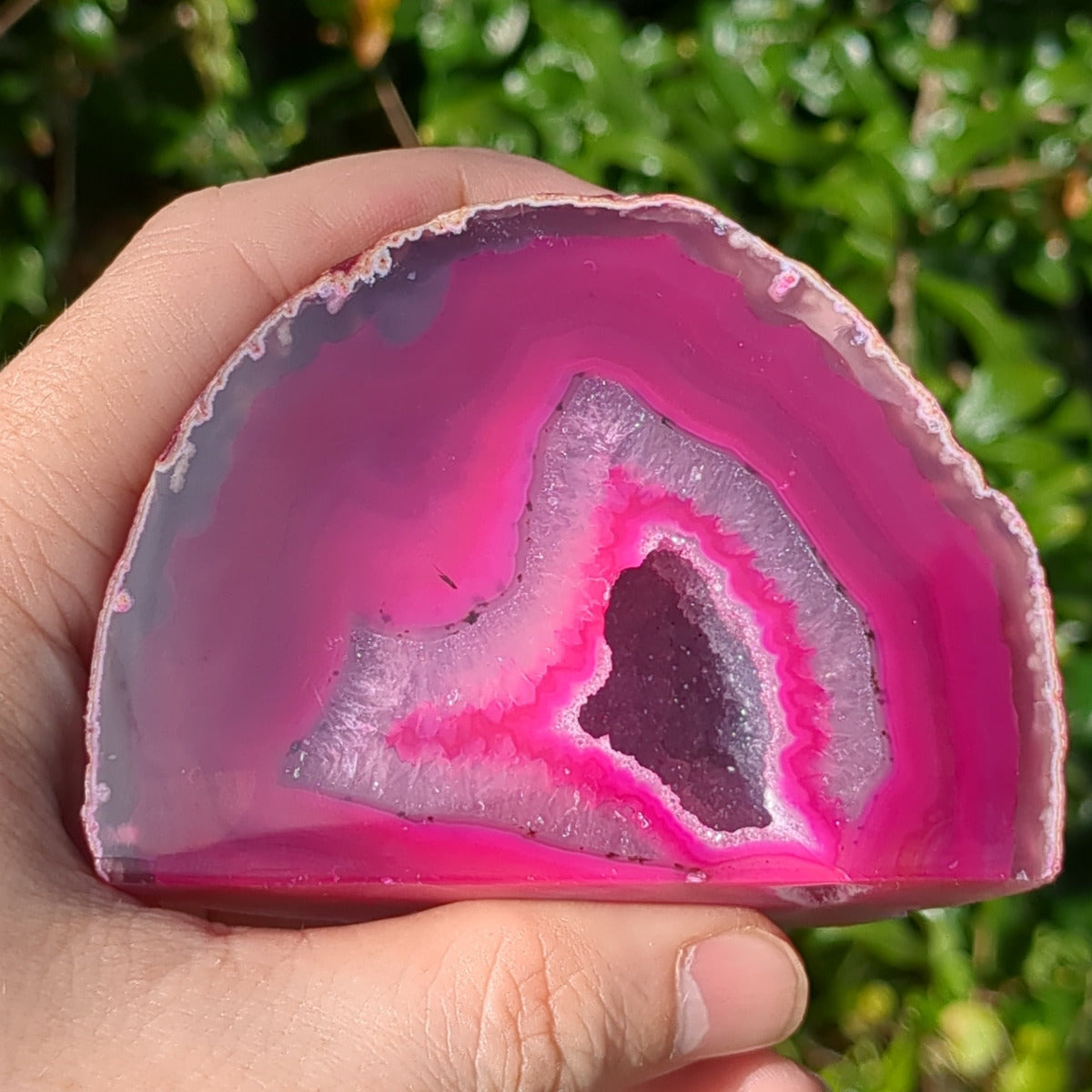 Coloured Agate Cave with Druzy - Pink (6-8cm) - 300-399g