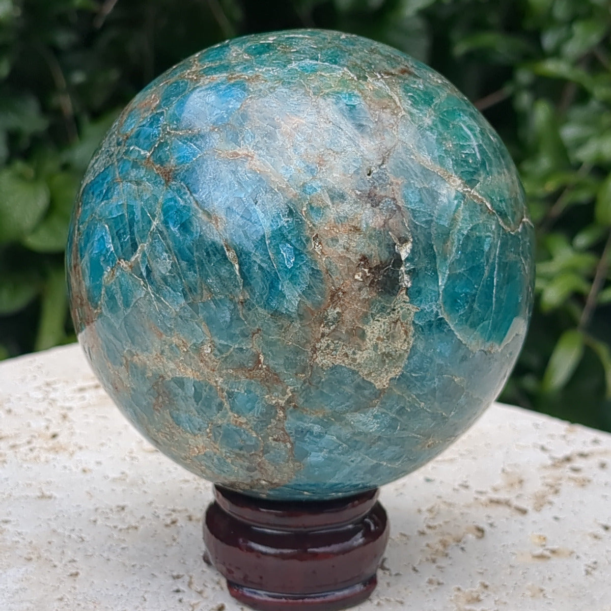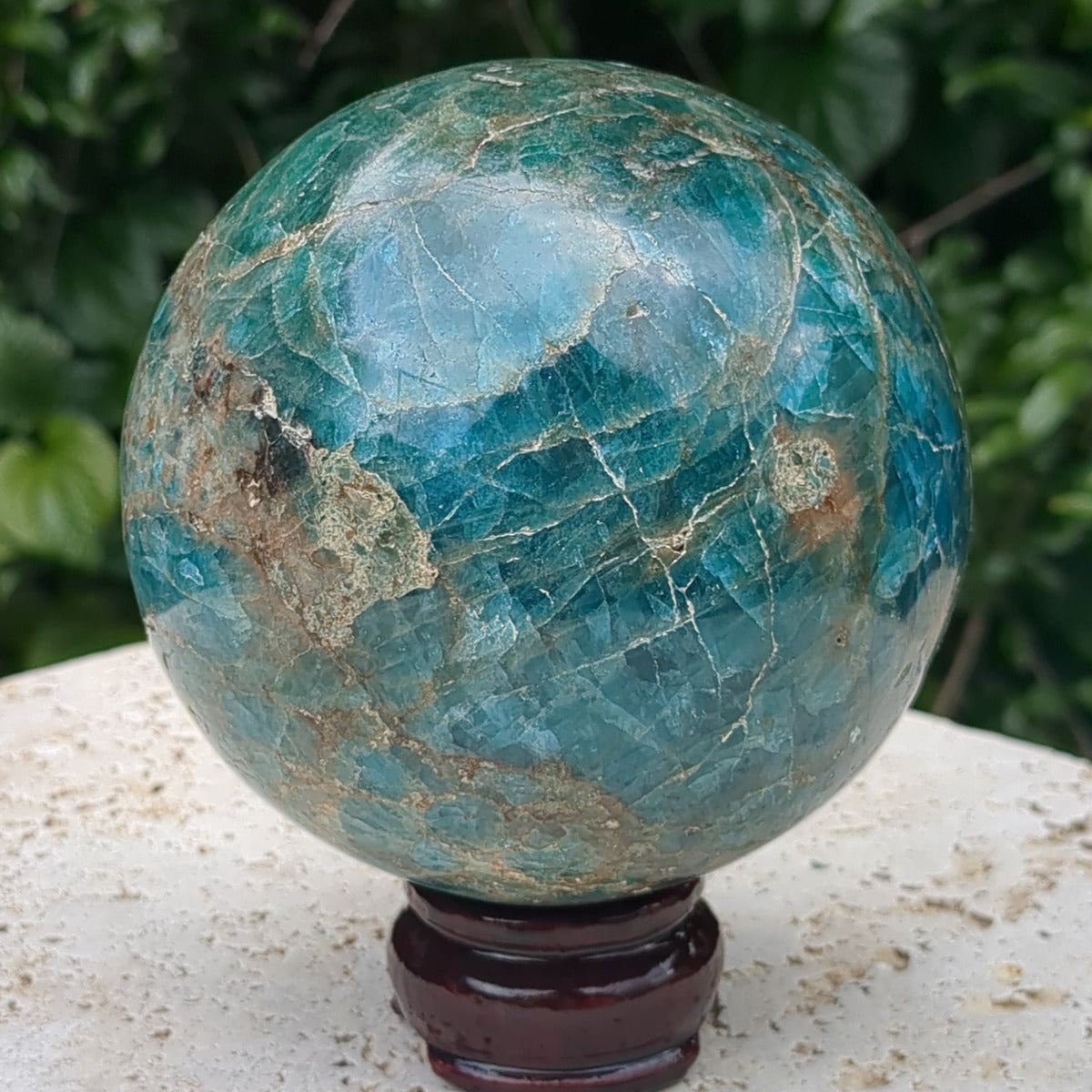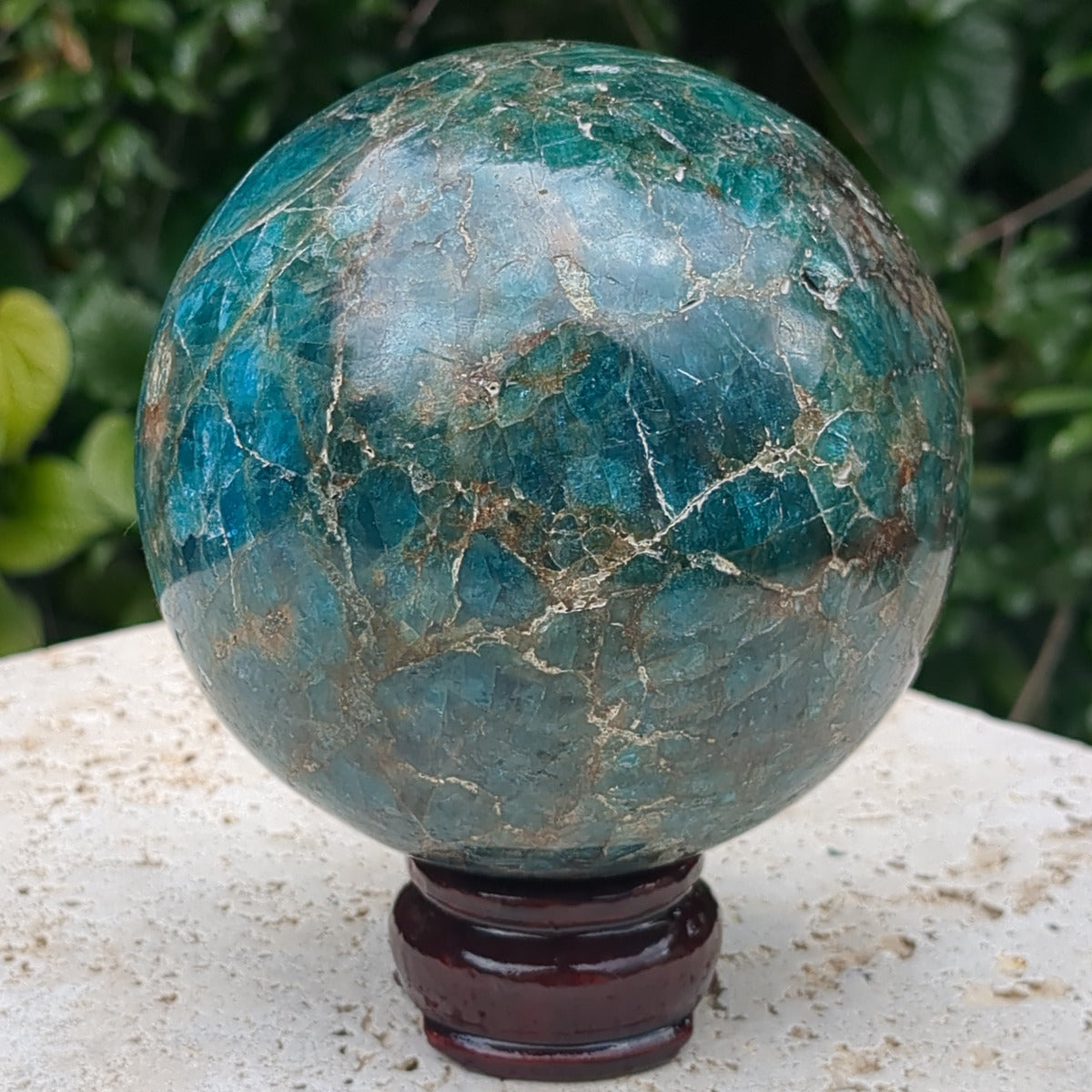 Elevate your crystal collection with our Blue Apatite Sphere! This stunning sphere boasts a vibrant, Dark Blue color and mesmerizing shimmers.