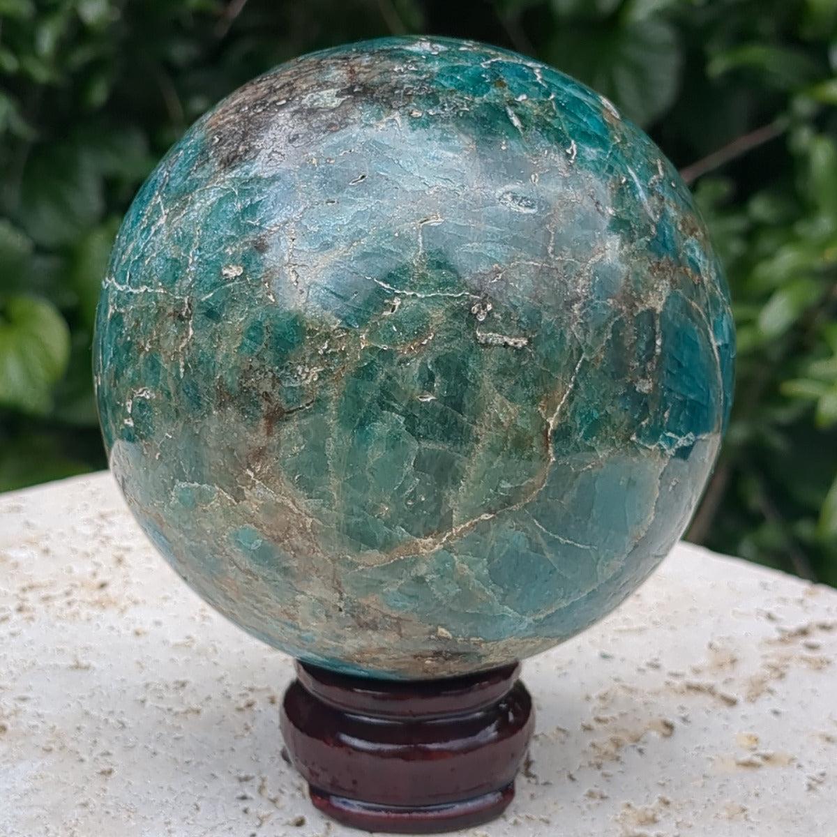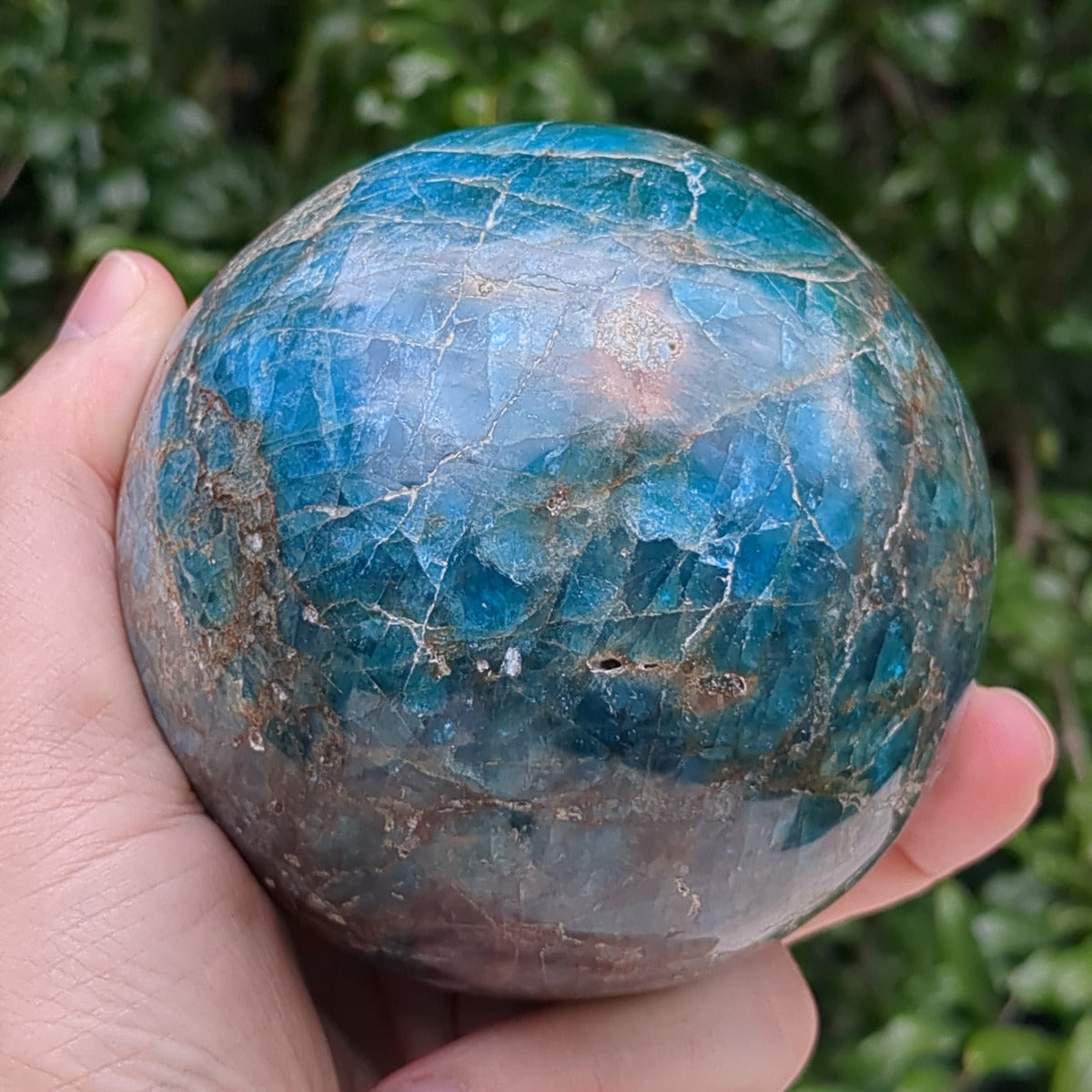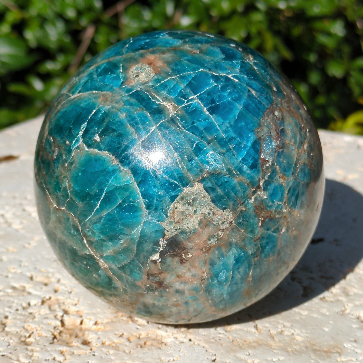 Elevate your crystal collection with our Blue Apatite Sphere! This stunning sphere boasts a vibrant, Dark Blue color and mesmerizing shimmers.
