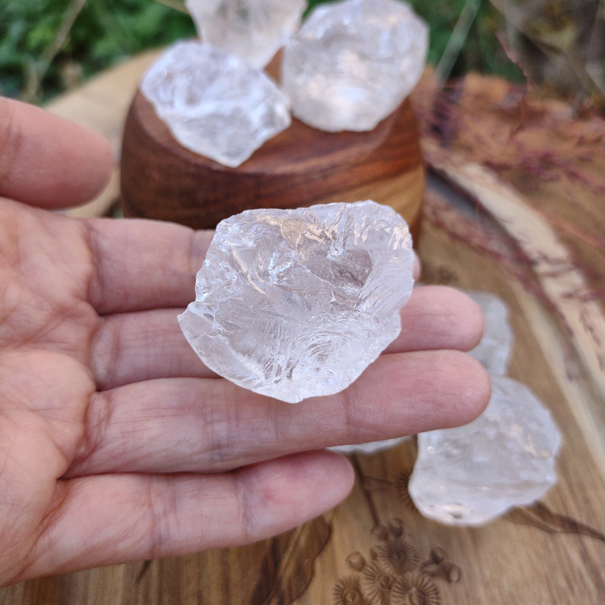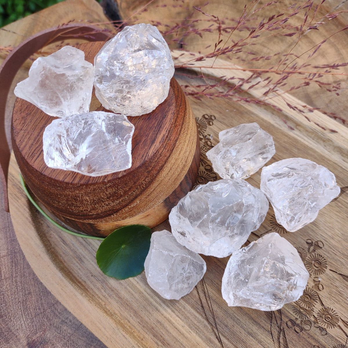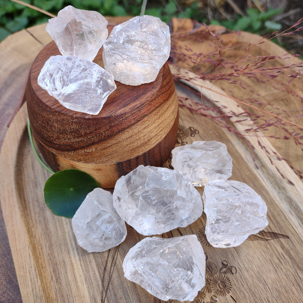 A pack of natural raw Clear Quartz chunks, these lovelies will be perfect for crystal grids, get creative and use them in a macramé pendant, wish jars or dot them around the house, office or workspace and be surrounded by these cute natural beauties.